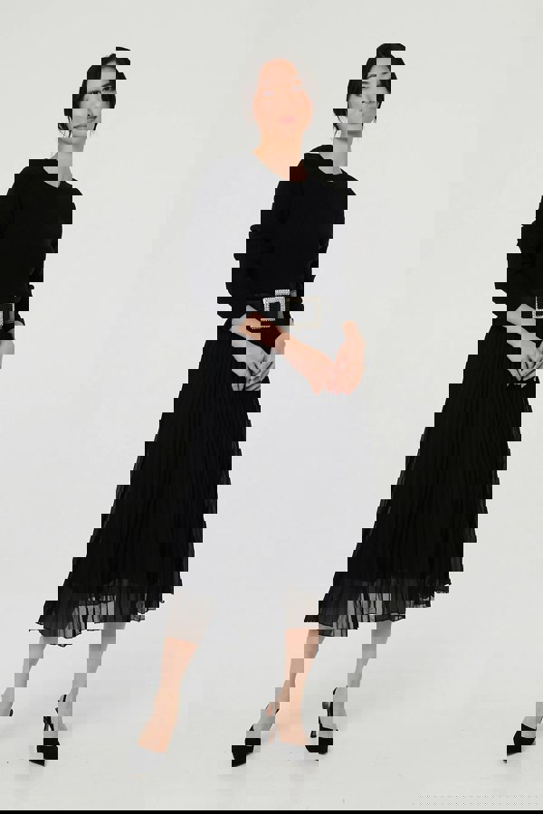 Add the perfect finishing touch to your evening outfit with this statement stretch waist belt. With a sparkly diamante buckle, faux leather detail and a wide elasticated band for a flattering waist cinching fit. Style over a satin slip dress and heels for a chic evening event look.
