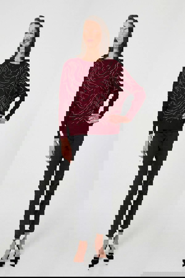 Add sparkle to your look with this diamante studded jumper. It has long batwing sleeves, a round neck and a hip length hem. Layer it over a faux leather skirt for an evening look, or simple jeans for a casual outfit.