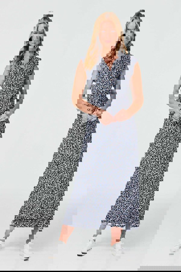You're more than ready for summer in this maxi dress. It has a v-neck and cap sleeves complete with frill details, a button front, a tie waist and a maxi length hem. Let the bold print make its statement solo or go maximalist with lots of jewellery and your favourite heels for an evening out.