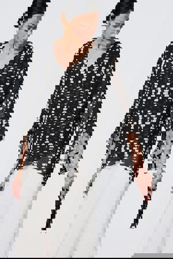 Get all of the style with none of the effort thanks to this blouse. It has a v-neck and 3/4 flared sleeves that will look timeless and elegant, whether you're wearing it for work or leisure. Plus, it has a semi sheer mesh layer and a modern curve hem for a unique finishing touch. Wear with smart trousers, a skirt or even jeans for a chic look.
