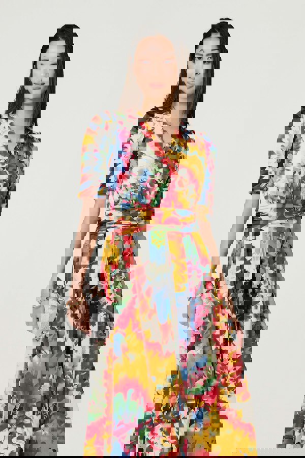 You can never go wrong with a floral wrap dress, just like this one. It has a v-neck, 1/2 sleeves and a ruched waist panel to give the illusion of a wrap dress - with none of the fiddly ties. Plus, the pleated skirt will flatter all figures. Complete this summery outfit with sandals or trainers, or dress up with heels and jewellery for a special occasion.