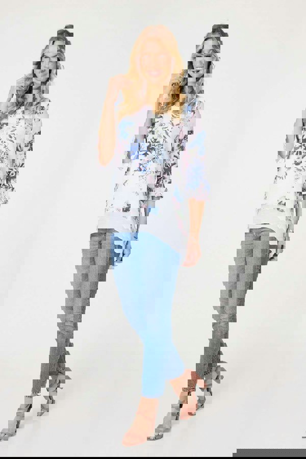 For a versatile top that works with trousers, skirts and jeans - look no further than this tunic. It has 3/4 flare sleeves with a round neck and a curved hem that goes from hip length to thigh length. The semi sheer layers add an elegant look to this longline top.