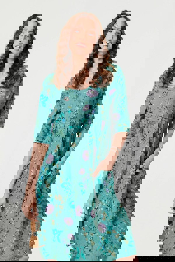 Keep your look casual with this elegant short dress. It has 3/4 sleeves, a scoop neck and hidden pockets. Thanks to a ruched shape on the front, this dress will flatter all figures and look great with casual trainers or sandals.