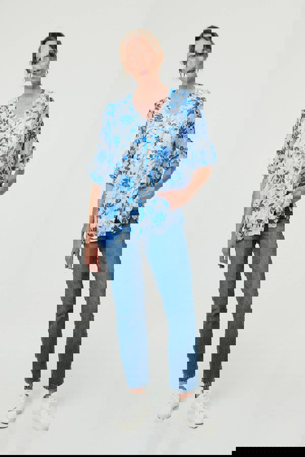 Keep it casual with this simple tunic blouse. It has 3/4 sleeves, a v-neck and buttons on the front. Thanks to a relaxed fit and a thigh length curve hem, this blouse is perfect for layering over trousers, jeans, or a midi skirt.