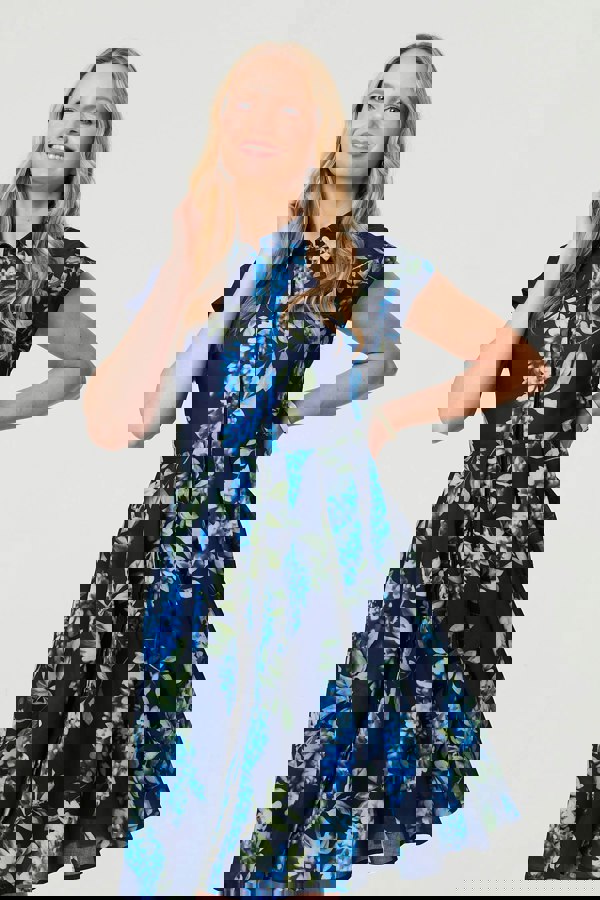 At your next special occasion, go for a more laid-back and playful look with this short dress. It has a stunning skater shape, with waist pleats and a flattering row of buttons down the front. It also has cap sleeves, hidden pockets and a collar. Wear this dress for a wedding or party with your favourite heels and a clutch bag.