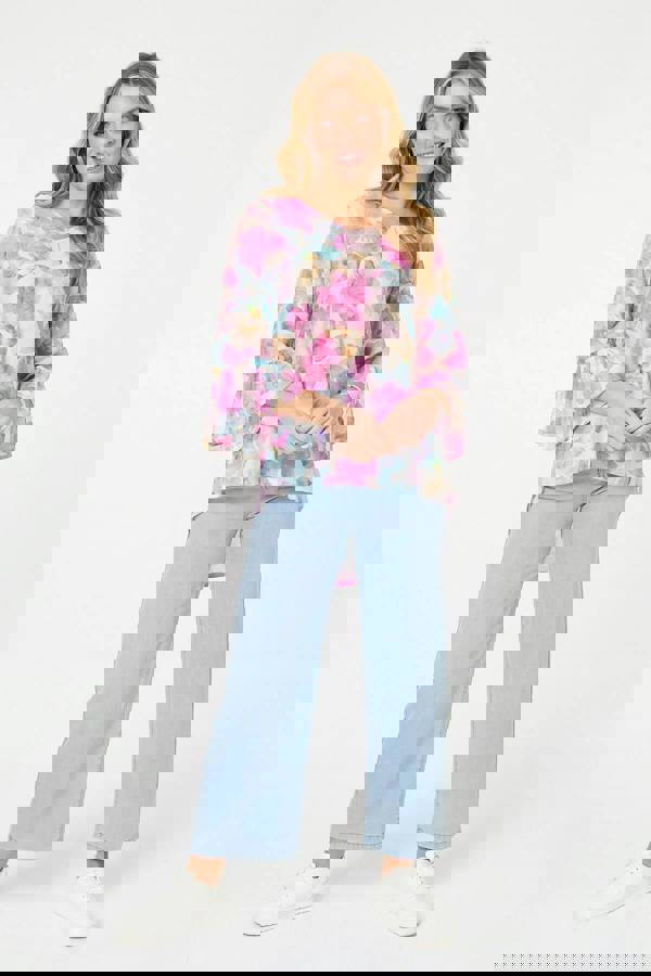 Dress for summer in this beautiful relaxed blouse. It has a curve hem tunic shape, with a thigh length fit that layers perfectly over wide leg jeans, shorts, or leggings. It also features a v-neck and 3/4 flare sleeves.
