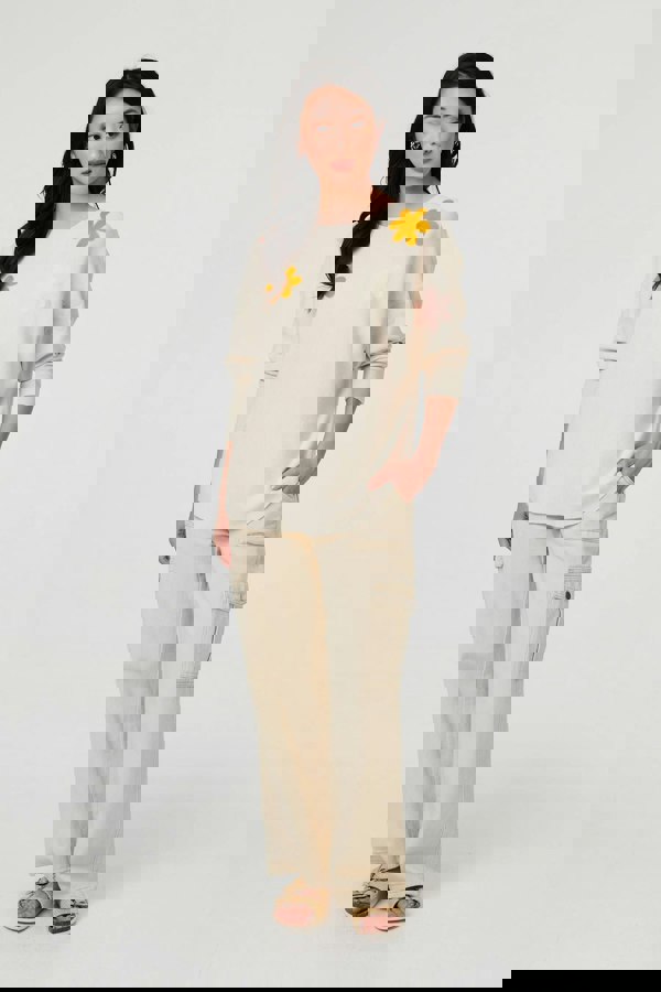 Get both warmth and style from this beautiful jumper. It has a relaxed shape, long sleeves and drop shoulders. The embellished details will add an extra splash of style to your outfit, whether you're styling this jumper with smart trousers for work, or relaxed trousers on the weekend.