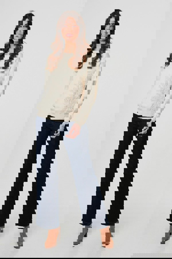 This soft jumper is perfect for cool days. It has a crochet textured embellishment and long sleeves, a round neck and a hip length hem. It's made from a viscose blend fabric for a super-soft fit, too. Wear it for any casual or professional event for laid-back style.