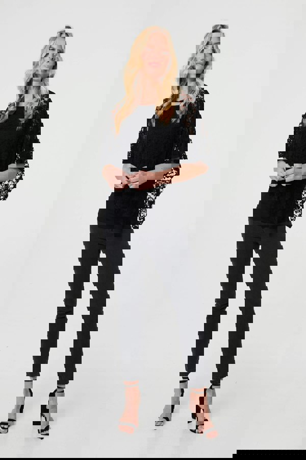 What could be more classic than this elegant floral lace blouse? It has a beautiful layered shape, with flared sleeves and a semi sheer texture. The asymmetric hem drapes over the bodice for a relaxed look. Get a formal finish by pairing this blouse with smart trousers.