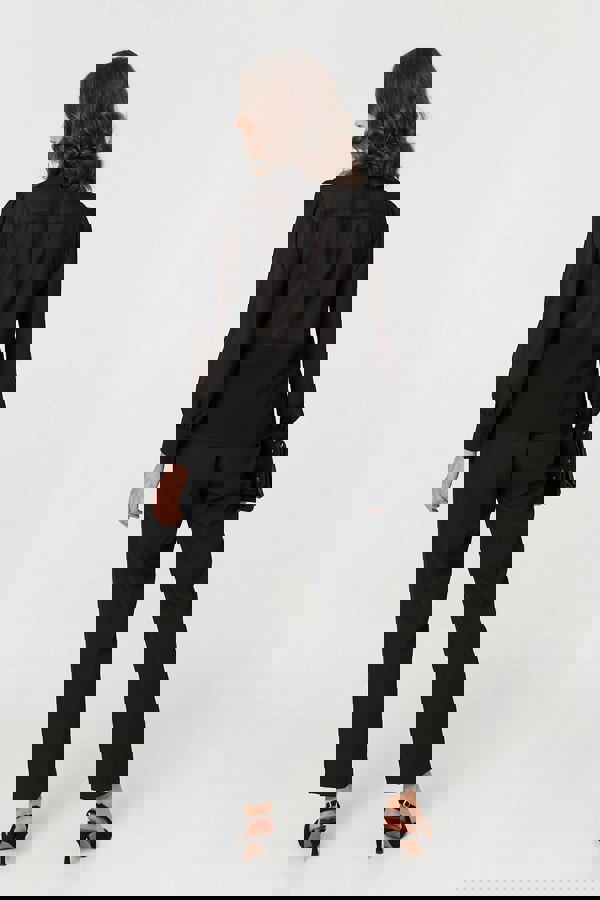 This smart blouse is perfect for formal dress codes. It has a textured fabric layer featuring beautiful lace details, along with a scalloped hem. It also has long balloon sleeves and a tie neckline that you can leave loose or fasten in a bow. Wear this blouse with smart trousers.
