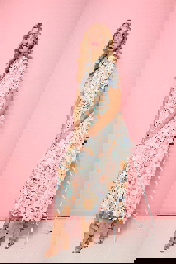 This stylish dress is perfect for smart-casual occasions. It has a tummy-flattering fit & flare shape with a tie waist, short sleeves, a collar and a slip dress lining. The printed lace has a cut out detail for an extra special finishing touch. Featuring a printed slip dress which can be worn alone, this dress is a versatile piece perfect for special events and holidays. Wear this dress with heels for formal occasions such as weddings, or try sandals for a more laid-back look.