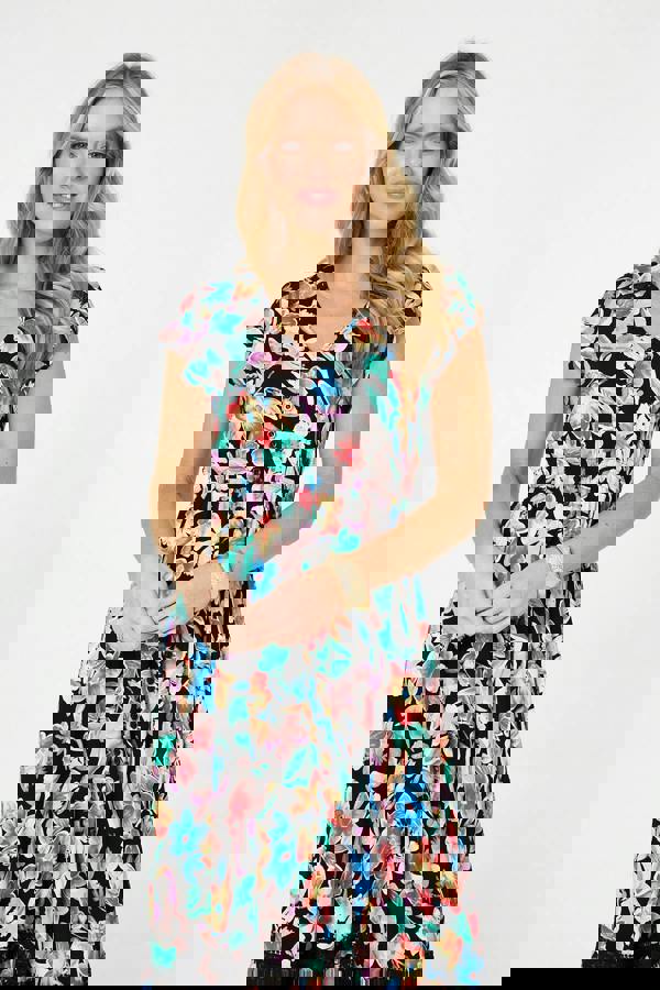 Izabel London Floral Lace Trim Cap Sleeve Maxi Dress brings an easy, relaxed shape to warm-weather dressing. Cut as a maxi dress, it has a v-neckline and cap sleeves for a clean, feminine silhouette. A shirred waist adds definition, while lace trim and button detailing complete the finish.