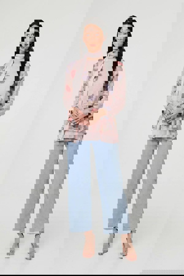 Stay comfy and stylish in this floral layered top. With a round neck, a matching scarf, a printed open knit top layer and a cotton rich lining, sits below the hips. Style with light wash denim and trainers for a casual daytime look.
