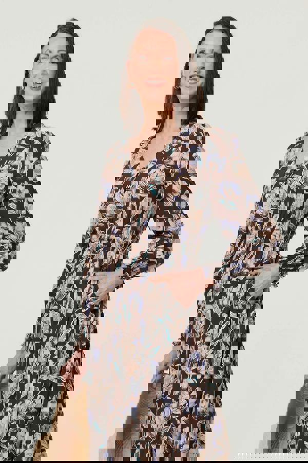 Every wardrobe needs a floaty maxi dress for the summer months. This one has long sleeves, a maxi length hem and a flattering shirred waistband for the perfect fit. It's finished with a lace trim and front buttons on the v-neck. Wear with sandals for a relaxed look, or heels on a night out.