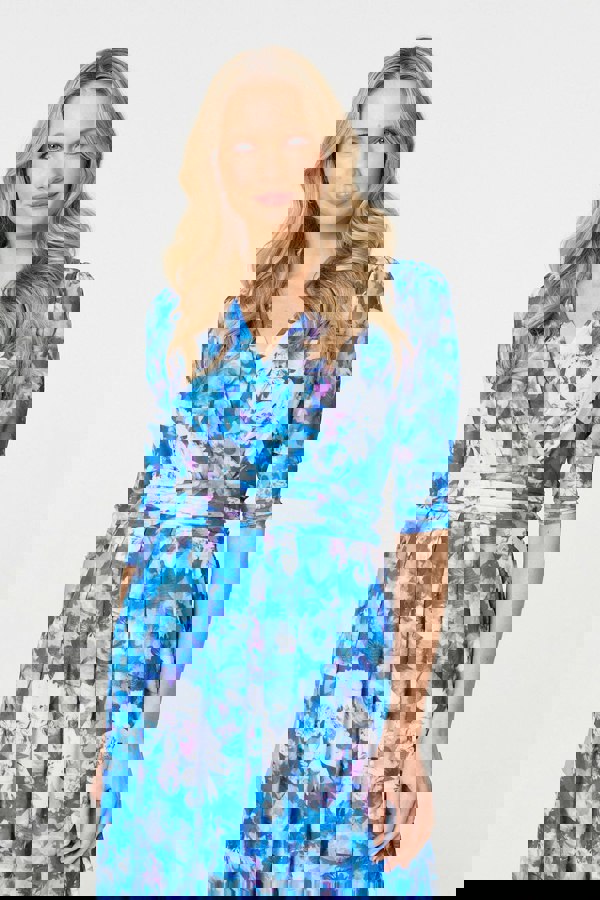 This is the perfect midi dress for special occasions and formal events. It has a tummy-flattering pleated front, with a ruched waistband that will compliment your natural figure. It has a semi sheer mesh layer with 3/4 sleeves, a classic v-neck and a midi length hem. All you need is a pair of heels and your favourite clutch bag to complete the outfit.