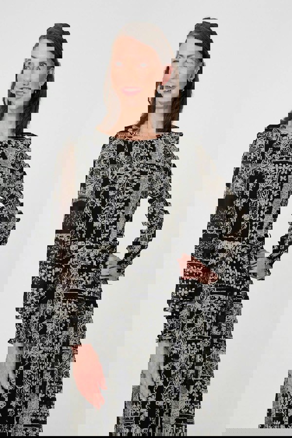 Add a timeless printed chiffon maxi dress to your dress collection. With a round neck, long sheer sleeves, a self-tie belt and a straight maxi skirt. Elevate with metallic heels for an evening invite.