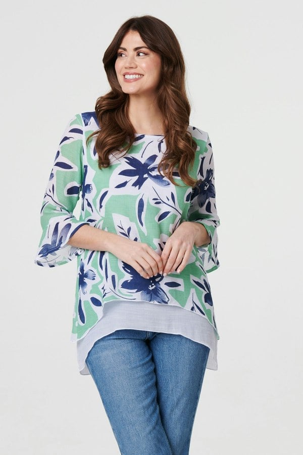 When it comes to laid-back style, you need this layered tunic top. It has a relaxed shape and a thigh length layered hem, giving the look of multiple tops worn over each other for a relaxed and on-trend look. It also has 3/4 flared sleeves, a curved hem and a round neck. Thanks to a soft viscose blend materials, you'll stay cool and comfortable all day.