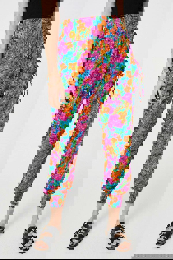 Whatever the summer throws at you, you'll be ready in these harem pants. They're made from 100% breathable viscose that will keep you cool and comfortable, while the shirred high waist allows for extra movement. These trousers also come complete with pockets and tassel tie fasteners. They're perfect for throwing on over a swimming costume on a day out at the beach, or you can elevate the look with a nice top and heeled sandals for an evening out on holiday.