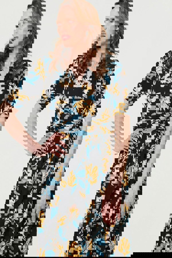 This elegant dress is perfect for formal occasions or smart days at work. It has short sleeves and a flattering v-neck, with hidden pockets and a midi length hem. It also has a ruched waistband and front pleats for a tummy-flattering silhouette. This dress is perfect for special occasion - just style with your favourite boots or heels.
