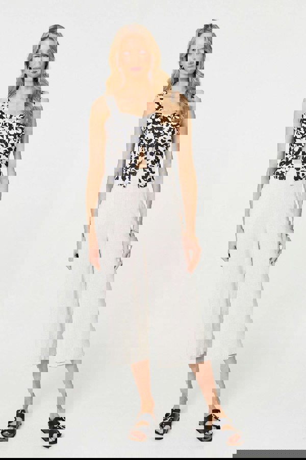 Dress for warm weather with this elegant crop top. It has a sleeveless fit with wide straps and a flattering sweetheart neckline. The cropped hem has a split front detail so you can show off your figure on a sunny day too. Complete the look with denim shorts or a maxi skirt.