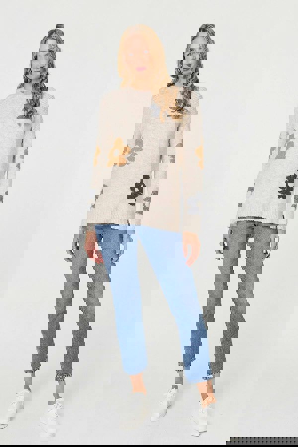 This jumper is comfortable, cosy, and perfect for your transitional wardrobe. It has long sleeves with drop shoulders, as well as a round neck and a thigh length hem. This jumper pairs perfectly with blue jeans or a denim midi skirt.