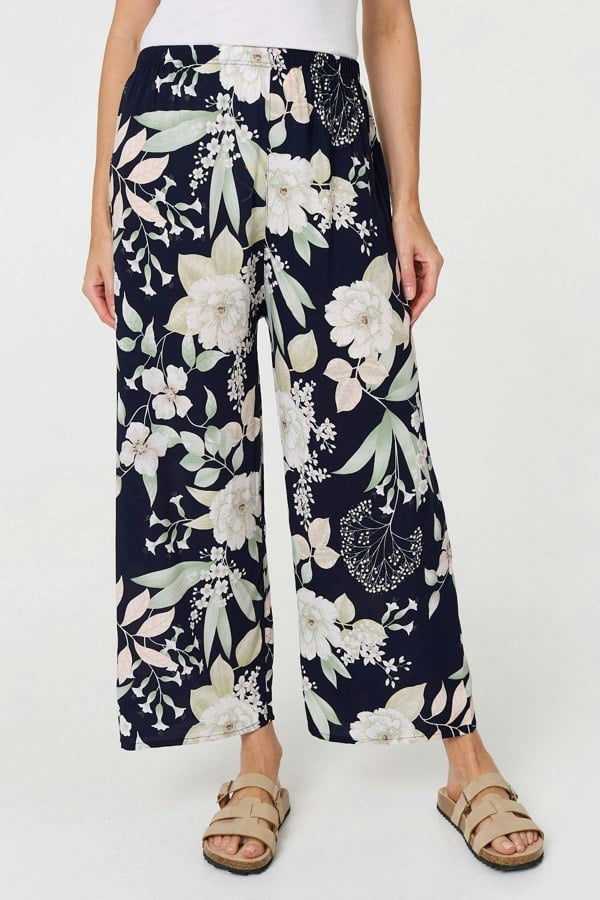 Feel comfortable and look effortlessly elegant with these high waist trousers. They have a tie front, a wide leg fit and ankle length hems. Wear them with a cami top or a vest for a laid-back, relaxed outfit.