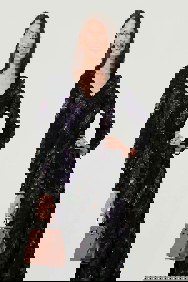 This beautiful floaty dress is just what your wardrobe needs this summer. It has long balloon sleeves, a v-neck and a shirred waist. It's finished with a lace trim around the skirt, as well as a row of front buttons. Wear it with heels on your next evening out.