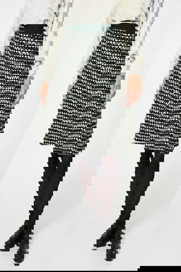 This knee length skirt is a must-have for your autumnal wardrobe. It has a high waist and a pleated knit texture, and a shape that flares slightly into a relaxed a-line shape. Wear it with a blouse tucked in for a smart outfit.