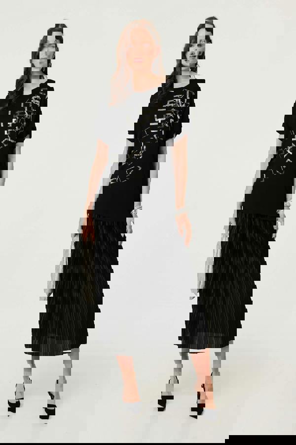 Stay comfortable and look casual in this relaxed t-shirt. It has short sleeves, a scoop neck and a thigh length hem. It's finished with elegant sparkly details on the front. Layer over a smart skirt for a comfortable evening outfit, or pair with blue jeans for an off-duty look.
