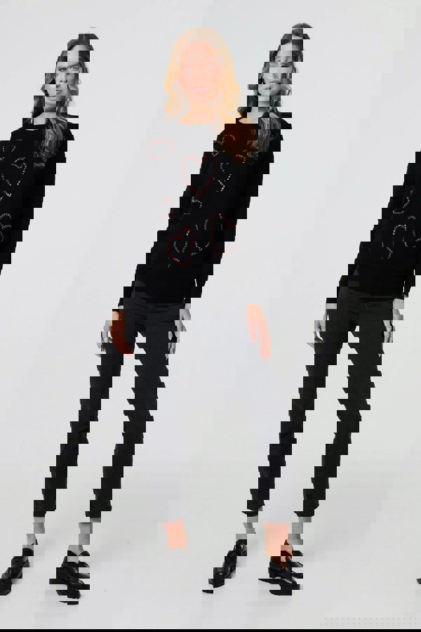 You'll love this love-heart embellished jumper. It's made from a viscose blend material with long sleeves, drop shoulders and a hip length hem. It has a relaxed fit which looks charming with jeans on a casual day.