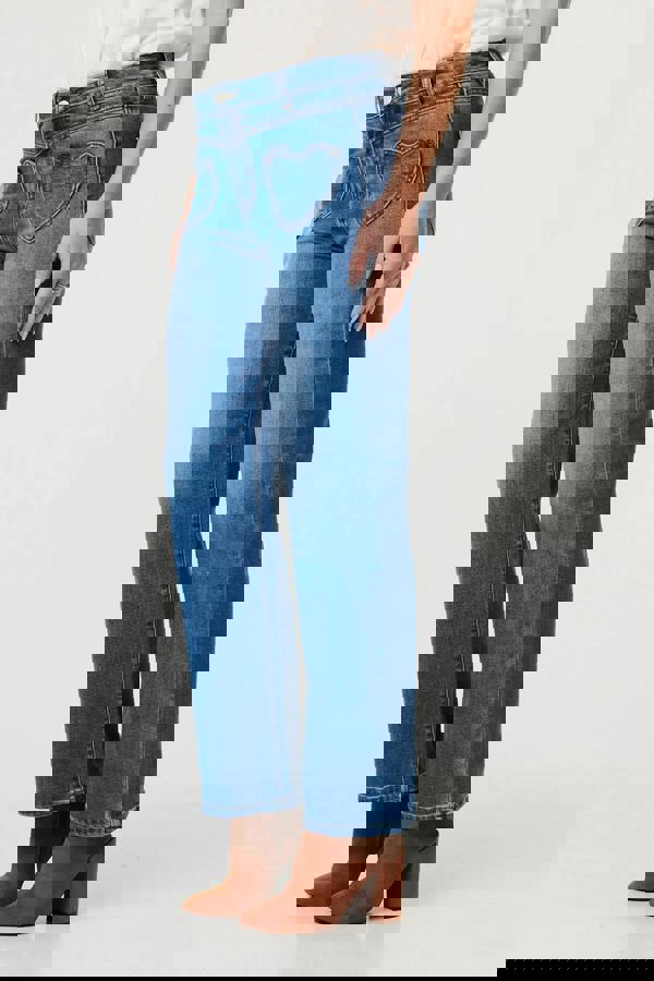 Give your denim collection an update with these comfy jeans. They have an elegant heart pocket detail on the front, along with belt loops and a buttons fastener. They have a straight leg fit and full length legs.