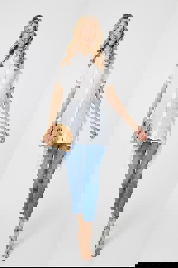 For something a little different from your average blouse, try this high low hem shirt. It has buttons, a collar and short sleeves like a classic shirt. But it also has a longline high low hem that reaches thigh length at the back. Plus it even has pockets! Style with trousers for the office and blue jeans for a casual day.