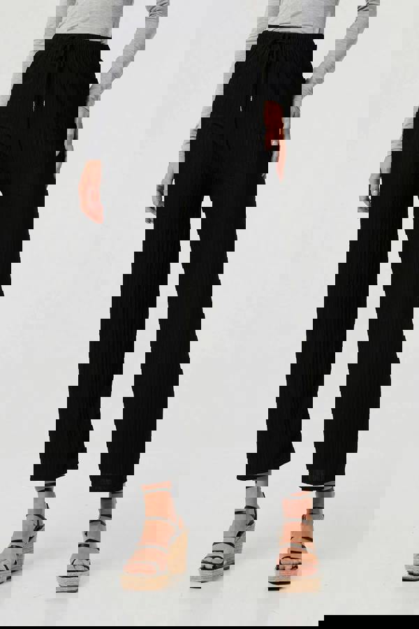These relaxed trousers will become your new favourite for lounging at home, days at work, or dressing up with a nice blouse. They feature wide legs, ankle length hems and a high waist with a tie front for the perfect fit.