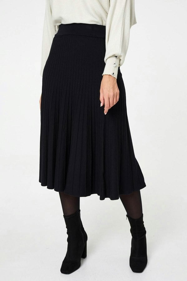 This beautiful skirt is perfect for pairing with a blouse or shirt for a smart dress code event. It has a flattering high waist with a slightly flared a-line skirt - along with a pleated texture. It's made from a soft knitted material for extra warmth on a chilly day.