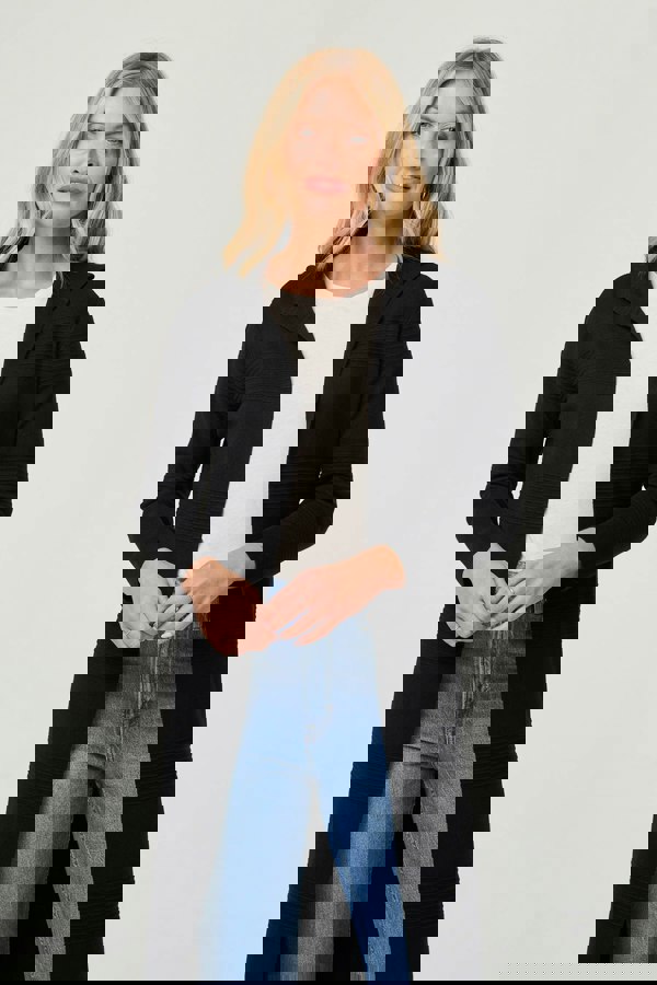 Layer up in style with this elegant long jacket. It has an ankle length shape, long sleeves, and a hood. The open front fit means this jacket will drape effortlessly over your outfit, so it's perfect for autumnal days and transitional weather seasons.