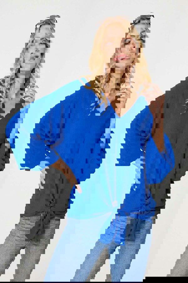 This blouse will make itself at home in any wardrobe. It's made from a comfortable viscose blend and has wide 3/4 sleeves and a v-neck. The front fastens with a stylish knot on the curved hem, for a look that's particularly stylish when paired with plain blue jeans.