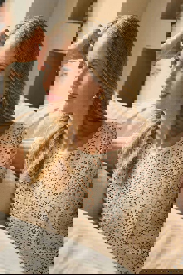 This crochet top is a summer must-have for your wardrobe. It's made from cotton blend fabric with a crochet-inspired lace texture. It also has a round neck, cap sleeves, a semi sheer lace fabric and a hip length hem. The boxy fit of this top looks effortlessly stylish next to blue denim, or pair with linen pants and sandals for a more smart summer look. Choose to wear on it's own or layer over a cami top for more coverage.