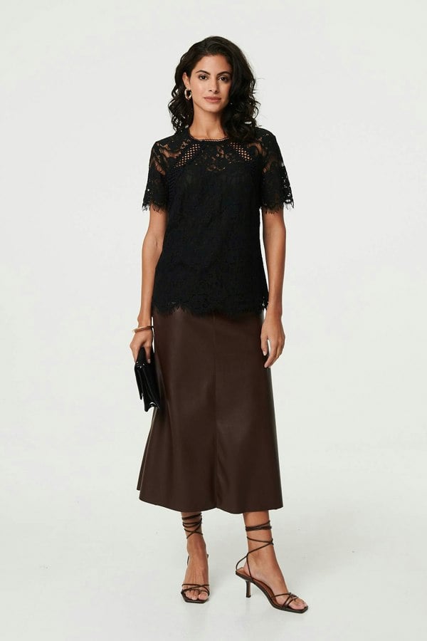 Add a refined finish to your everyday wardrobe with this elegant lace overlay blouse. Designed with a delicate lace layer over a soft cotton-blend base, this short sleeve top offers a flattering slim fit with a classic round neckline. Lightweight yet polished, it’s an easy piece to dress up or down — perfect for elevating casual outfits or pairing with tailored trousers for a smarter look. Style with jeans and flats for daytime, or layer under a blazer for effortless workwear appeal.
