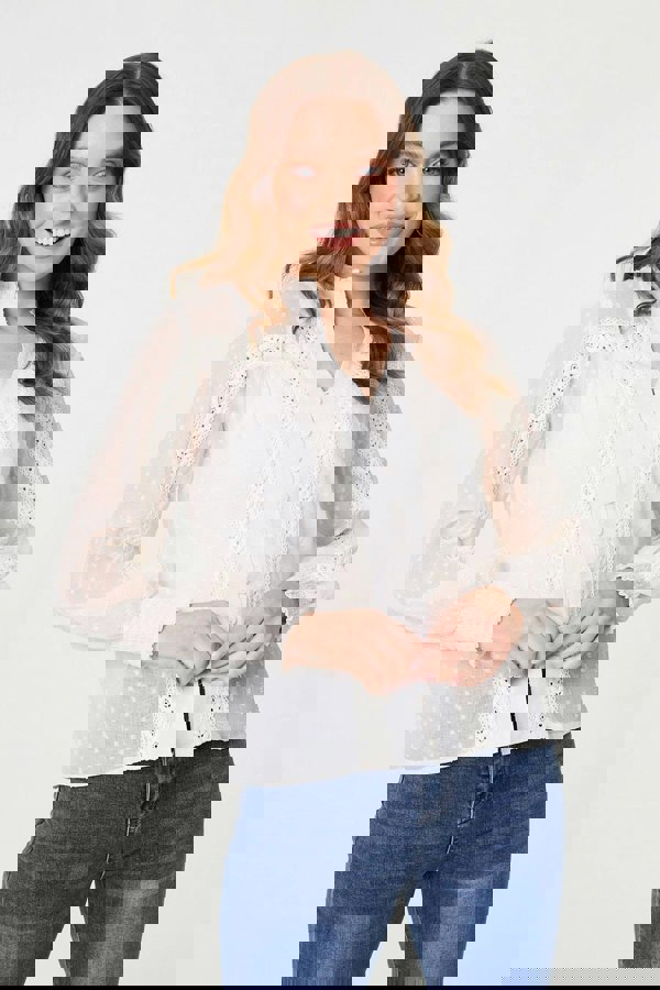 This stylish shirt is a must-have for smart and casual dress codes. It has a high v-neck with long puff sleeves, front buttons and a lace trim detail. Wear it with blue jeans for a relaxed look, or elevate with a fitted midi skirt or trousers for the perfect office-ready attire.