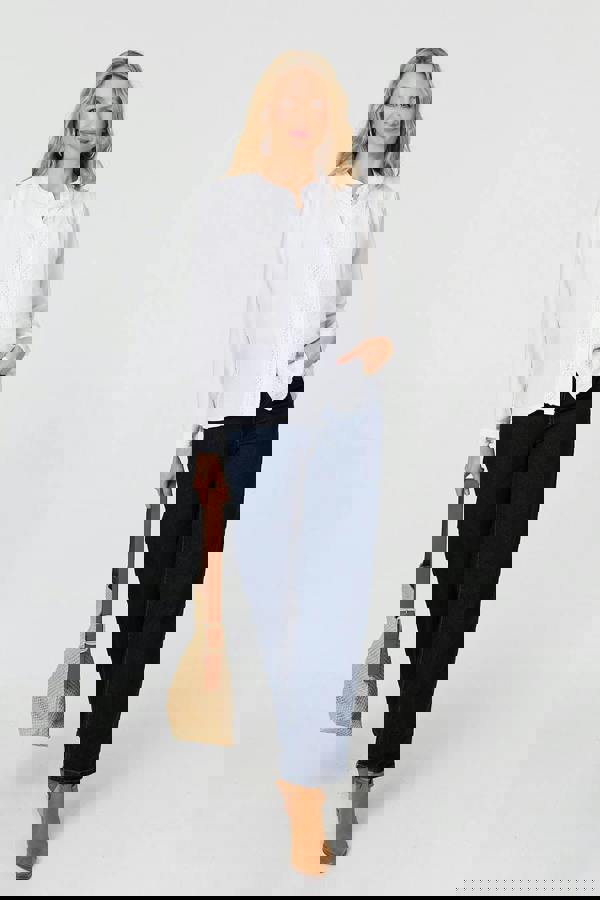 This elegant blouse is just what your wardrobe needs this season. It has a round neck, a relaxed fit and lace trim details for a simple-yet-stylish look. It also has long sleeves and fastens with buttons on the front. Wear this blouse with a floaty maxi skirt for a laid-back look.