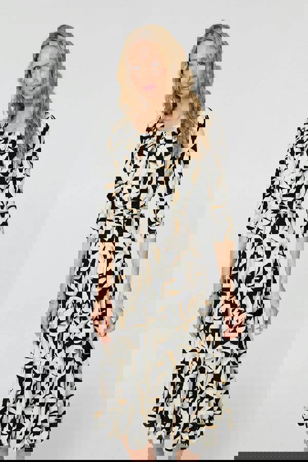 Everyday styling gets a fresh point of interest with Izabel London’s Leaf Print 3/4 Sleeve Midi Tie Dress. Set to a midi length, it pairs a ruched round neckline with 3/4 sleeves and an A-line shape for a clean, easy silhouette.