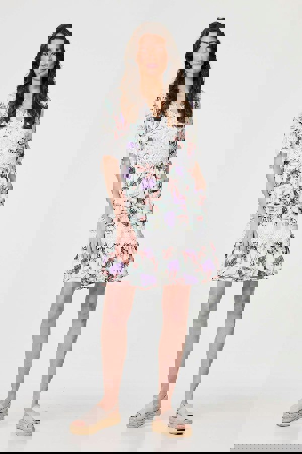 All wardrobes need a dress like this for the summer! It's made from 100% viscose and has a short hem that will keep you cool, even on a hot day. It has a v-neck, an empire waist, 1/2 sleeves and a beautiful white lace trim that will flatter all skin tones. Plus, it even has hidden pockets!
