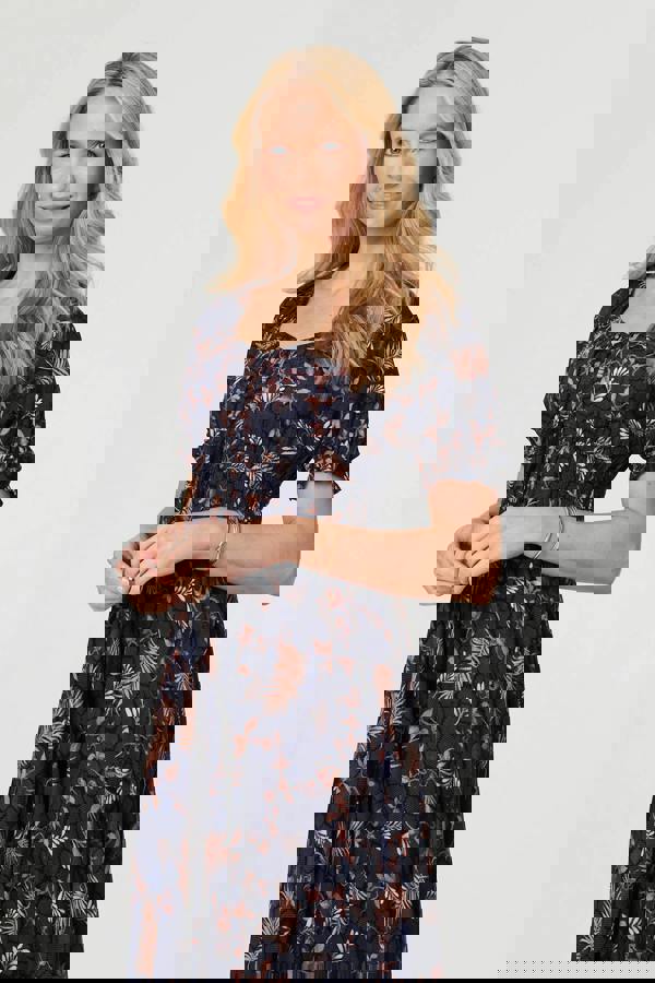 Izabel London’s Leaf Print Short Puff Sleeve Maxi Dress brings a considered look to special-occasion dressing. Cut to a maxi length, it pairs short puff sleeves with a sweetheart neckline for a defined silhouette. An empire waist is finished with a tassel tie detail, while a shirred back adds shape through the bodice. Handy pockets complete the design.