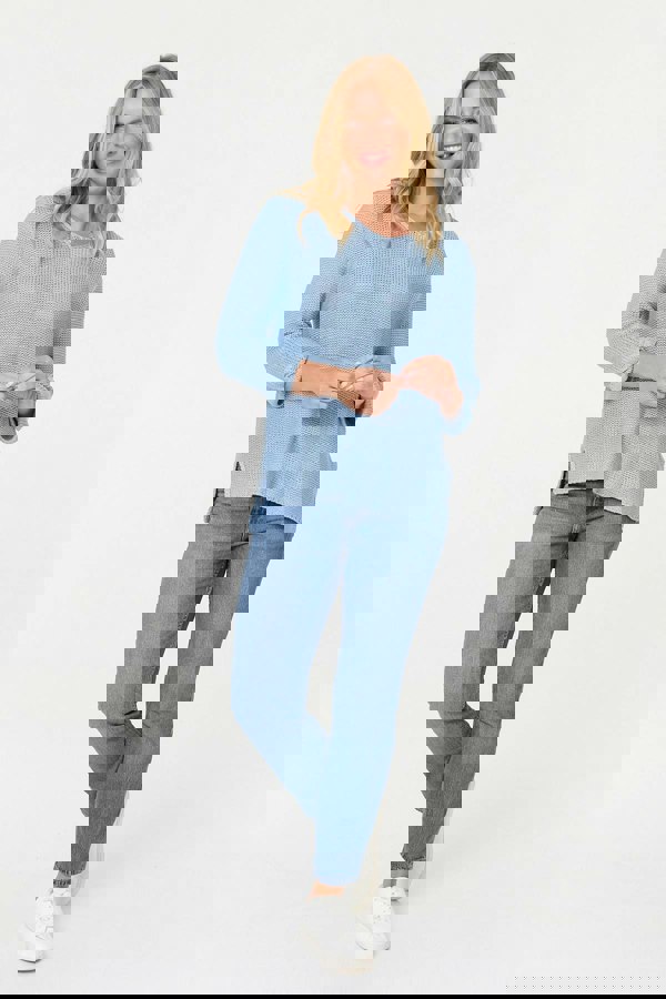 Keep your look effortlessly casual with this mesh top. It has a semi sheer finish thanks to an open knit texture, with 3/4 sleeves and a relaxed scoop neck. Style with blue denim for an easy, elegant outfit that works for smart and casual dress-codes.