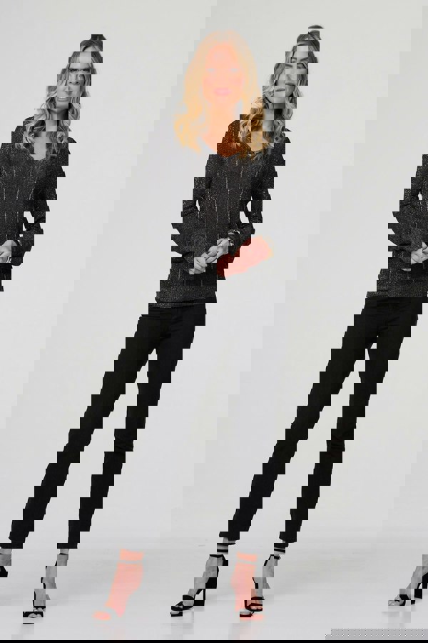 Sparkly, flattering and comfortable - what's not to love about this top? It's made from a shimmery stripe detail fabric made from a breathable viscose blend. You'll feel confident and look stylish with a v-neck and long puff sleeves. Wear it with trousers for a formal look, or go for a smart-casual outfit with your favourite jeans instead.