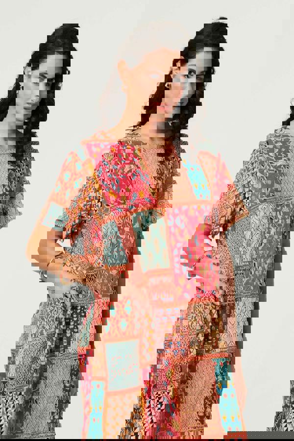 Keep comfortable and elegant in this stylish shift dress. It has a round neck, short sleeves and a relaxed fit. Wear it with trainers for a relaxed look, or dress up with heels and a clutch bag for a special occasion.