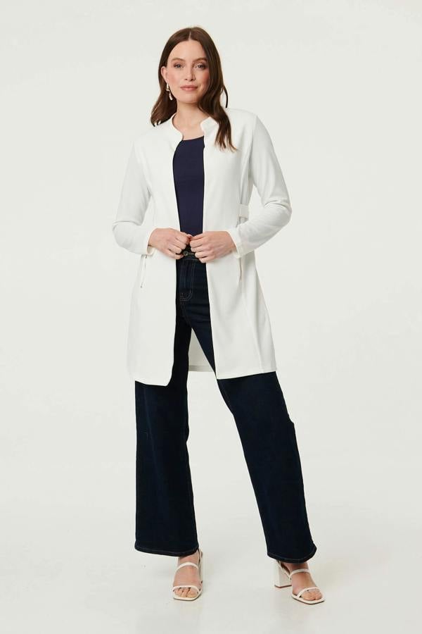Get the best of a coat and a cardigan with this comfortable coatigan! It has long sleeves, a slim fit, and a thigh length longline shape. It has an open front, meaning there are no buttons to fasten - instead it drapes beautifully over your outfit. It also features a high neck and zip-up pockets. It's perfect for smart casual dress codes.