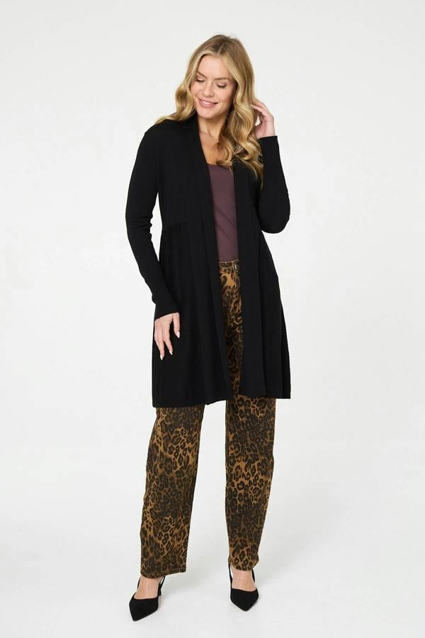 This longline cardigan will add an extra layer of warmth to any outfit. It has an open front fit, with long sleeves and a thigh length hem. Wrap it around yourself to stay cosy, or leave it loose for a waterfall front look.