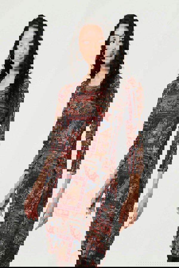 This elegant dress has 3/4 sleeves, a short length hem and a scoop neck. It has a slim fit for a flattering look on all figures, and it's perfect for styling with tights and boots for effortless autumnal style.