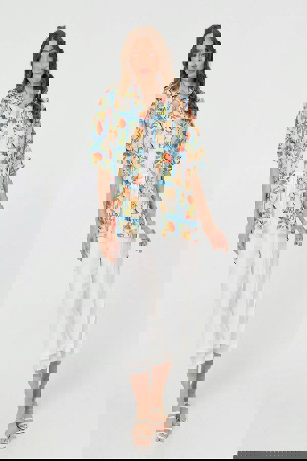 Get that holiday-ready look with this relaxed shirt. It has 1/2 sleeves, a collar and front buttons - along with a thigh length hem that layers perfectly over shorts or trousers. Wear this shirt unbuttoned over a white vest, or fasten it up for a more put-together look.